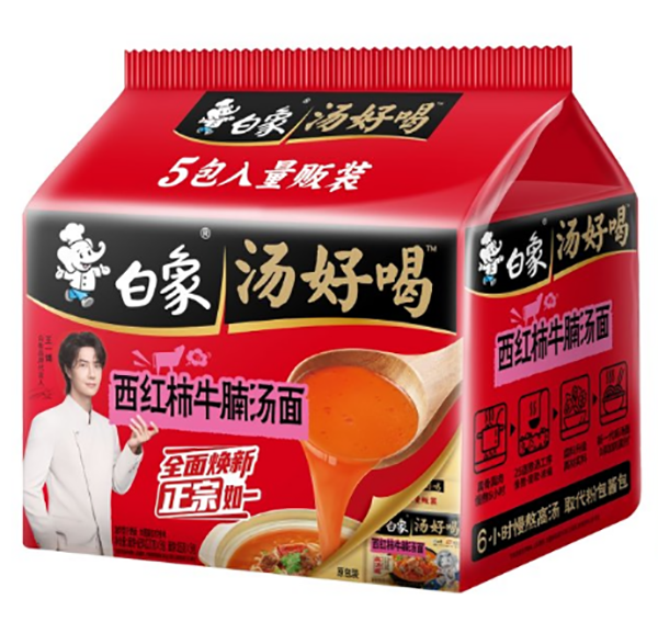 5连包127g白象汤好喝西红柿牛腩汤方便面#